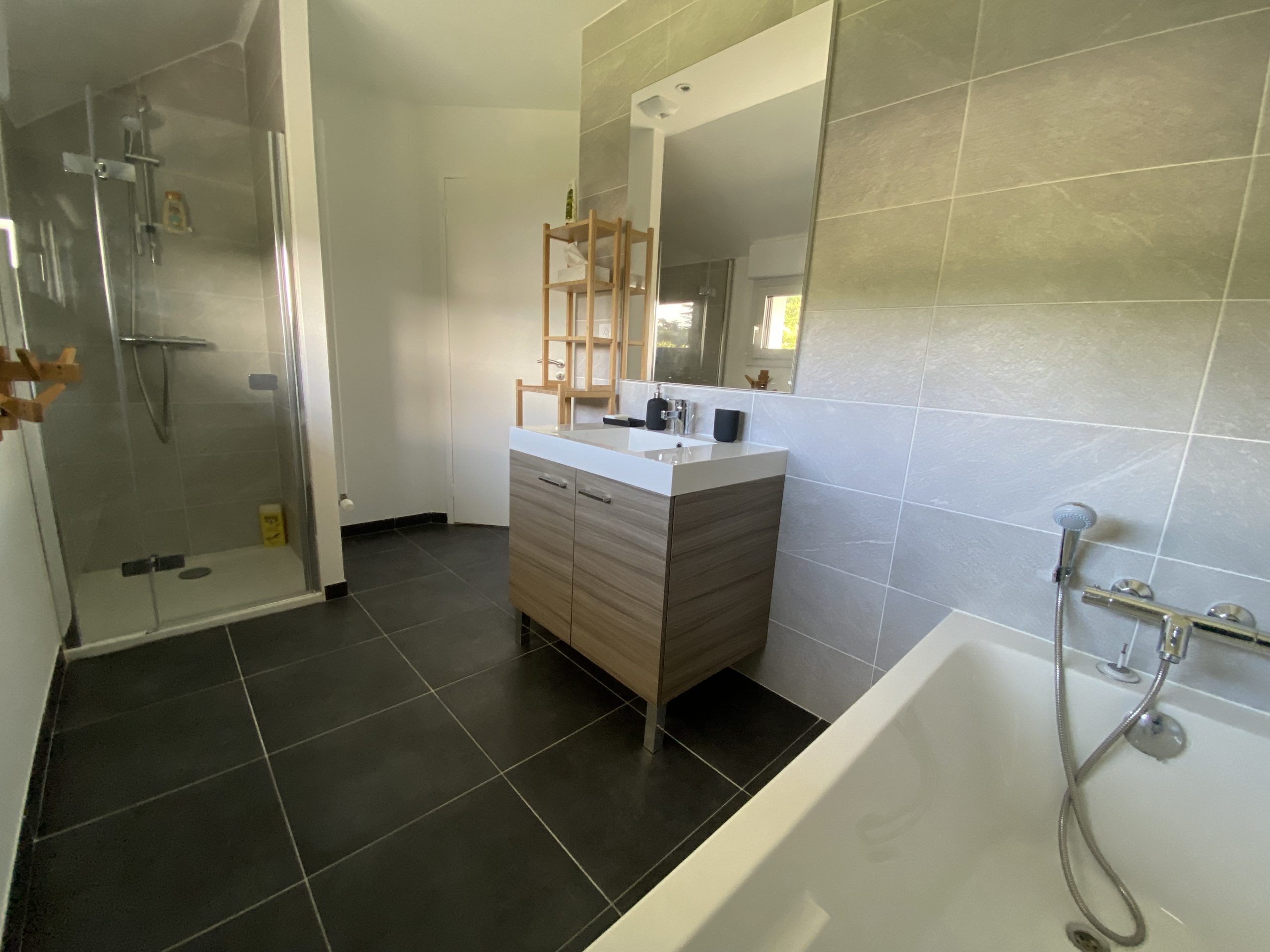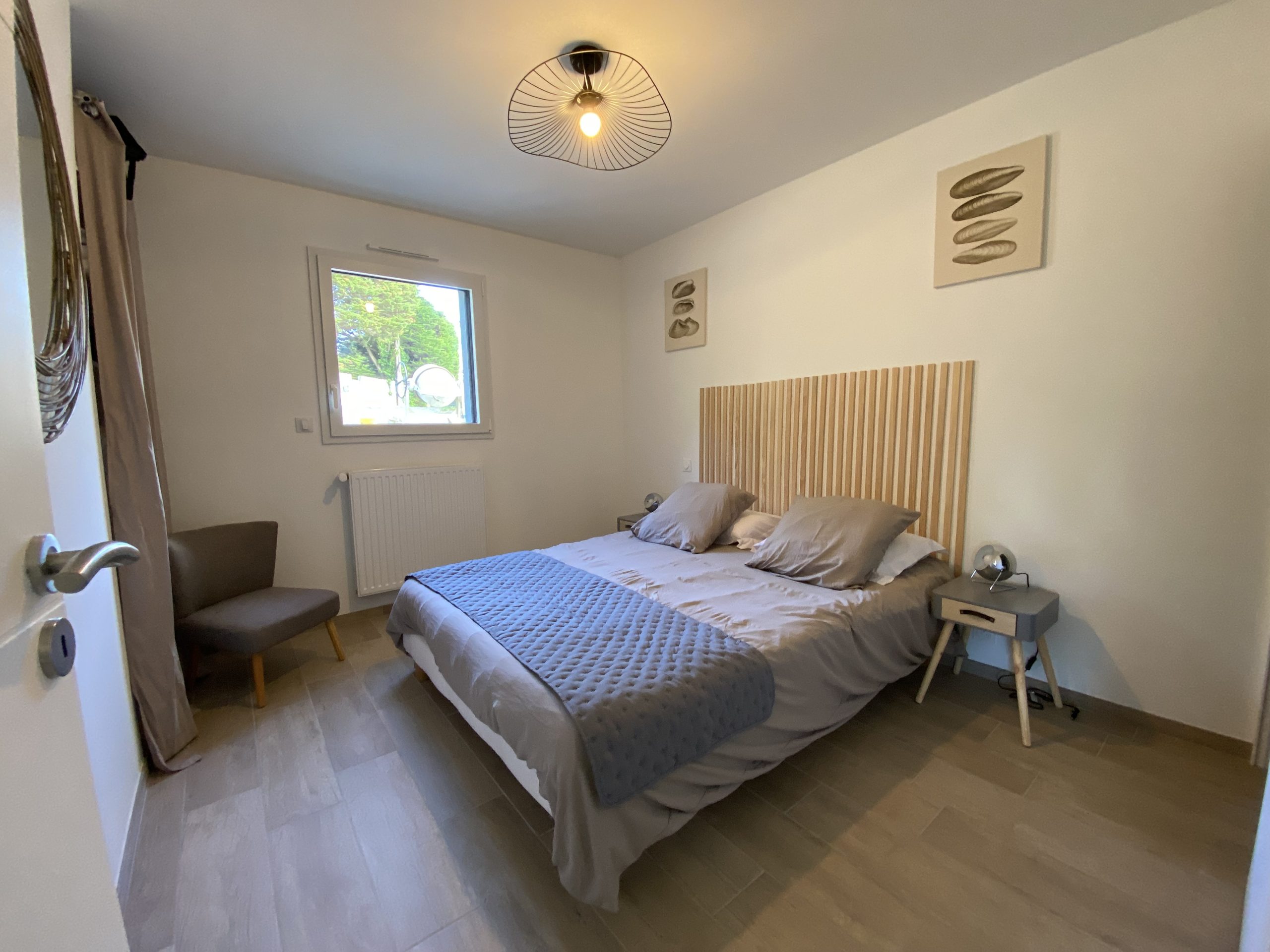 - une chambre (1 lit 2 personnes 160×200) avec salle d’eau attenante (douche), wc.